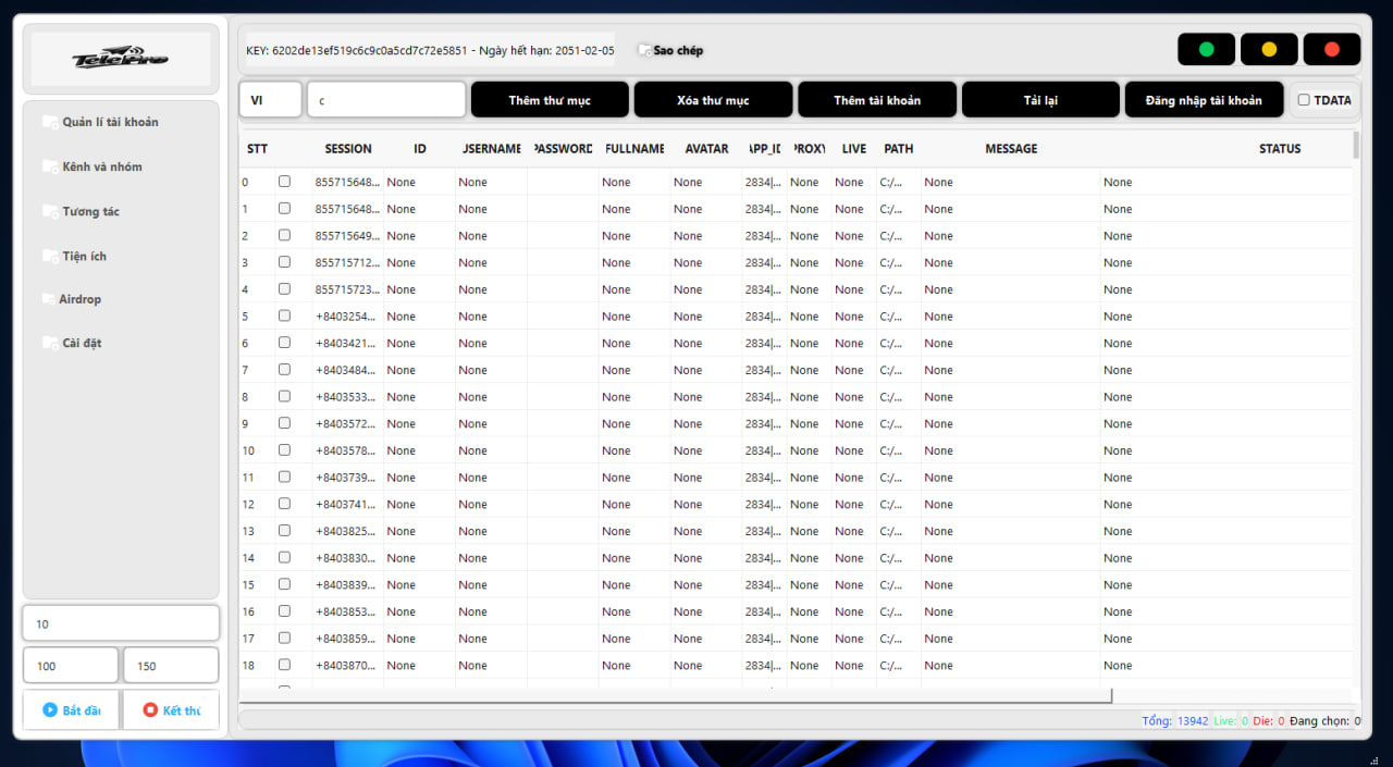 Software supports Telegram with many features such as: Add members to groups/channels, buff post views, drop channel emotions, seeding groups, spam messages in bulk, get members online…
